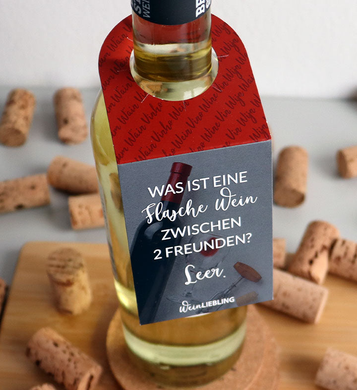 Verschenke jetzt Freude mit unseren Weinflaschenanhängern.