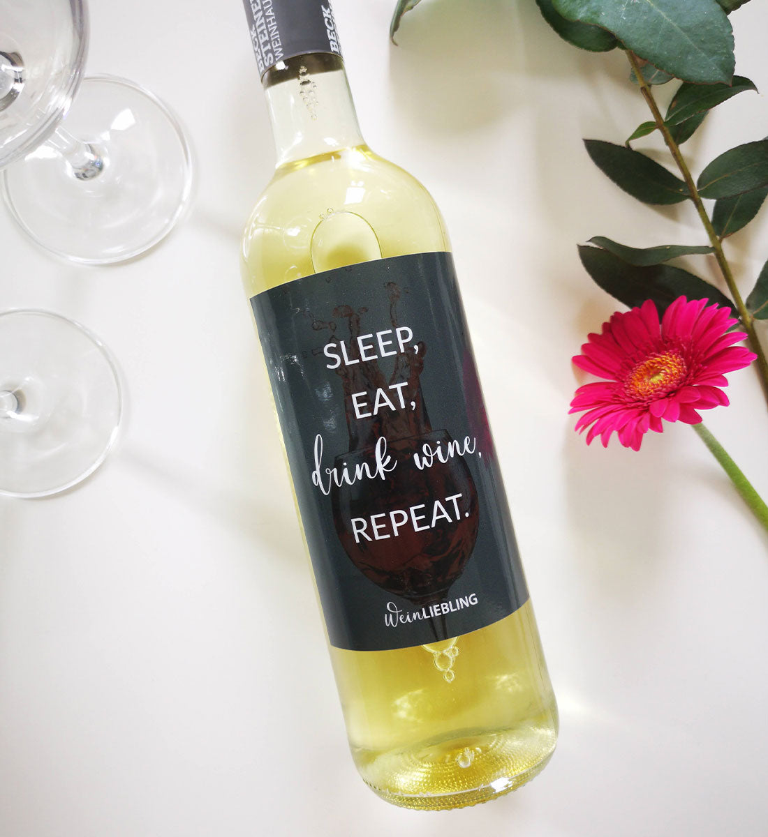 "Drink wine, repeat" Weinetikett