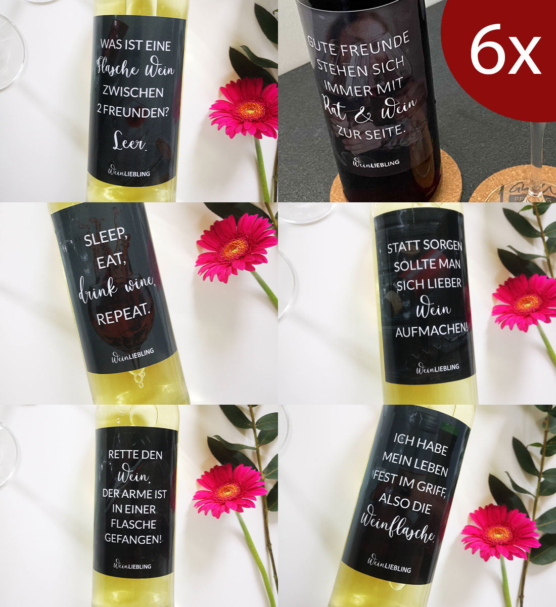 Du kennst das sicher auch, was gibt es schöneres als an einem freien Abend mit einer guten Flasche Wein in der Hand zu einer guten Freundin oder einem Freund zu gehen? 🤩 Passend für solche Anlässe haben wir für dich diese Weinetiketten gestaltet, mit denen du deinen Freunden zeigen kannst, wie viel sie und Wein dir bedeuten.