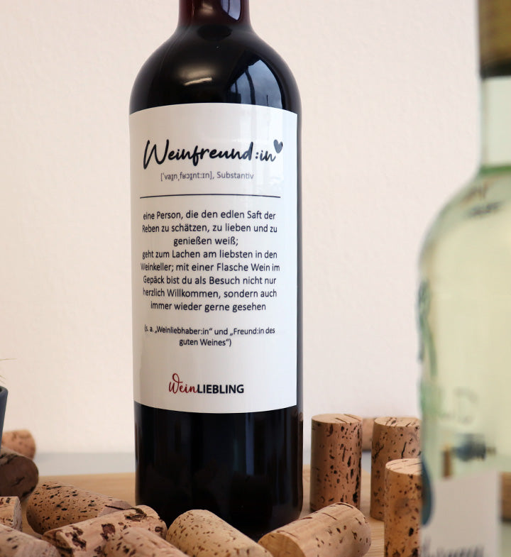 Dein Weinfreund versteht auch ohne Worte, wann du einen Wein brauchst und mit ihm schmeckt der Wein gleich doppelt so lecker. 🍷 Gibt es einen Menschen, an den du bei dieser Definition denken musst? 🥰 Mache ihm eine kleine Freude mit einem Weinetikett aufgeklebt auf einer Flasche Wein und zeige ihm oder ihr wie viel dir eure gemeinsamen Weinabende bedeuten. 🥂