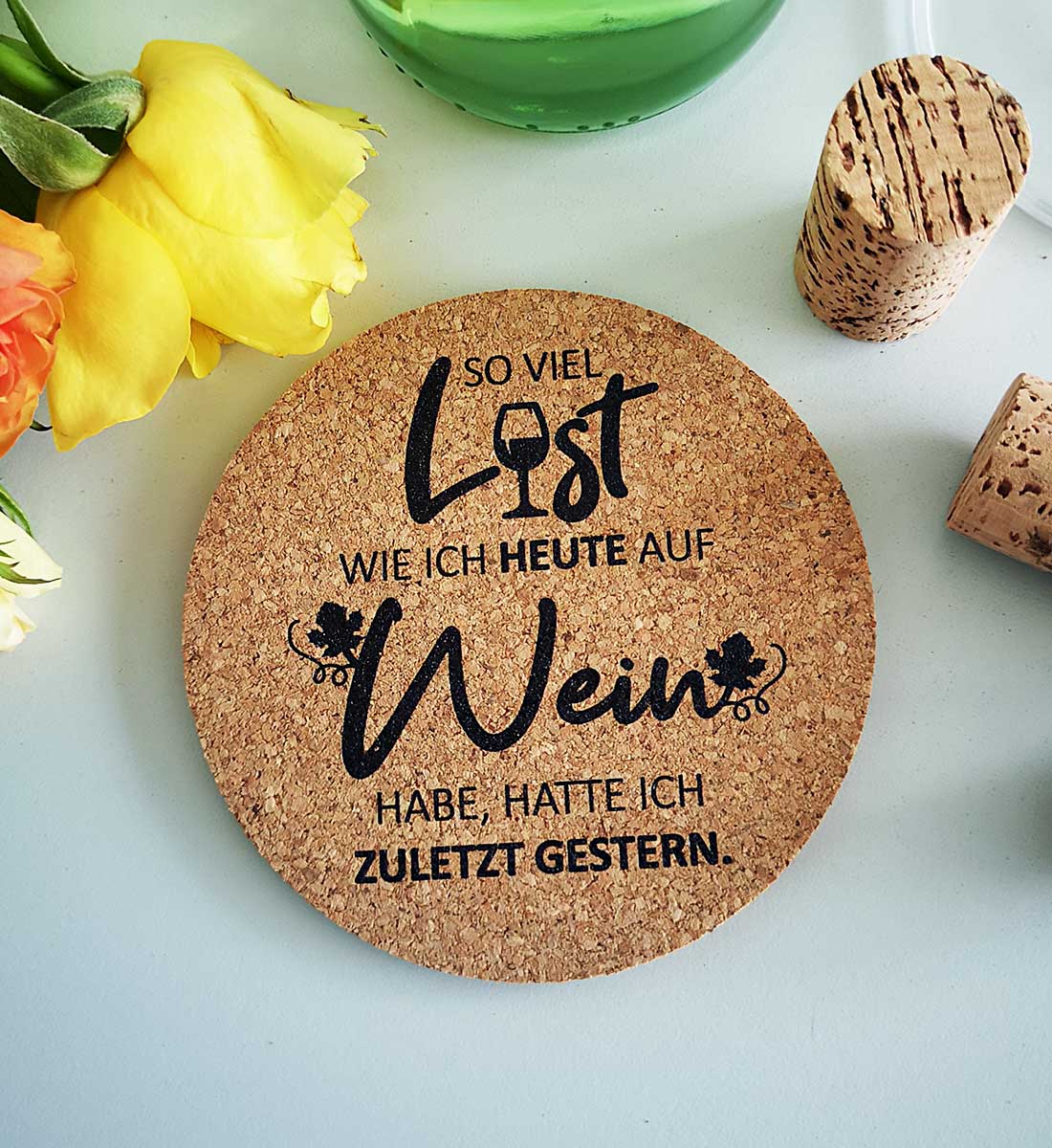 Diese Korkuntersetzer sind für deinen nächsten Weinabend perfekt geeignet. Egal, ob du alleine ein Glas deines Lieblingsweins genießt oder zusammen mit deinen Freunden anstoßen möchtest, diese Untersetzer kommen mit Sicherheit immer gut an!
